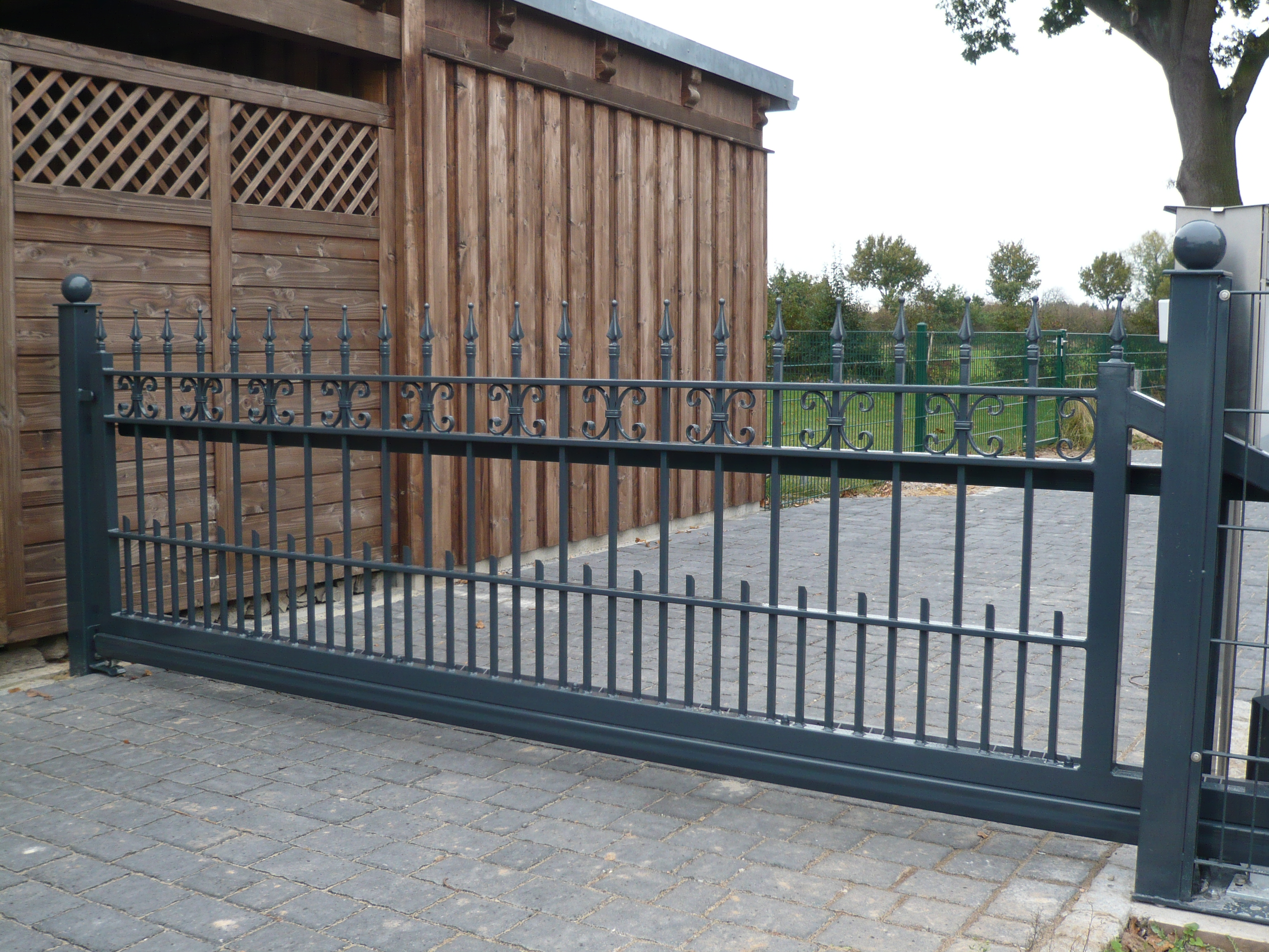 Schiebetore finden oft ihren Einsatz wenn Funktionalität und Platz zusammengebracht werden muss. Schiebetore können vom Aussehen her individuell gestaltet werden, ob aus dem Classic, Hespen oder Schmiedeeisen Program. Schiebetore bieten einen vielfältigen Gestaltungspielraum. Alle Tore können sowohl manuell als auch mit elektrischen Torantrieben bedient werden. Grundsätzlich sind alle Tore feuerverzinkt und können durch eine zusätzliche Pulverbeschichtung individuell gestaltet werden.