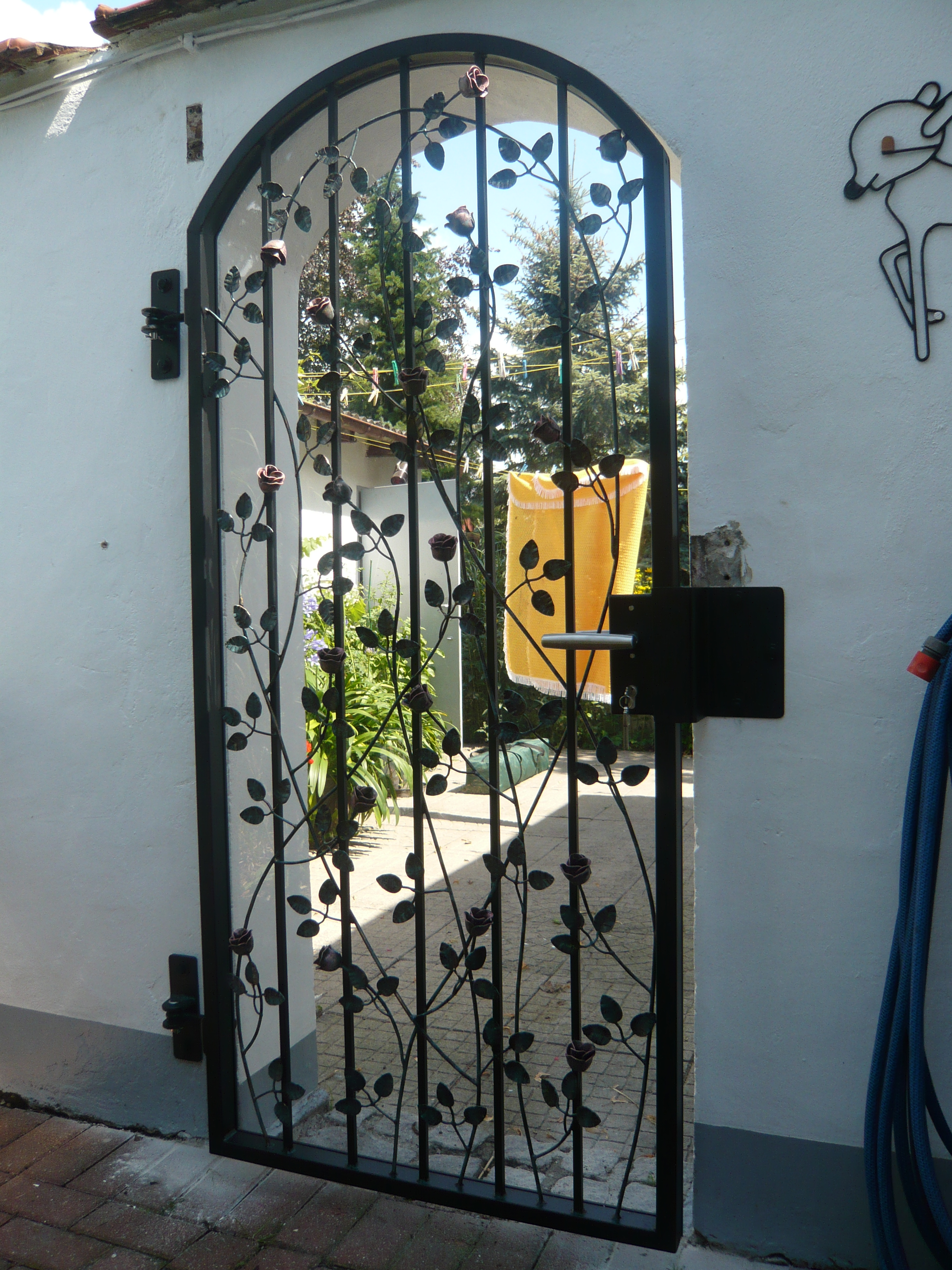 Der Begriff Schmiedeeisen umfasst eine große Palette. Schmiedeeisen entwickelt durch individuelles zusammenfügen einen besonderen Scharm. Ob kunstvolle Gestaltung oder Zweckmäßigkeit, jedes Tor erhält seine persönliche Note. Alle Tore verfügen über einstellbare Torbänder, hochwertige Schlösser und können auch mit elektrischen Torantrieben ausgestattet werden. Grundsätzlich sind alle Tore feuerverzinkt und können durch eine zusätzliche Pulverbeschichtung individuell gestaltet werden.