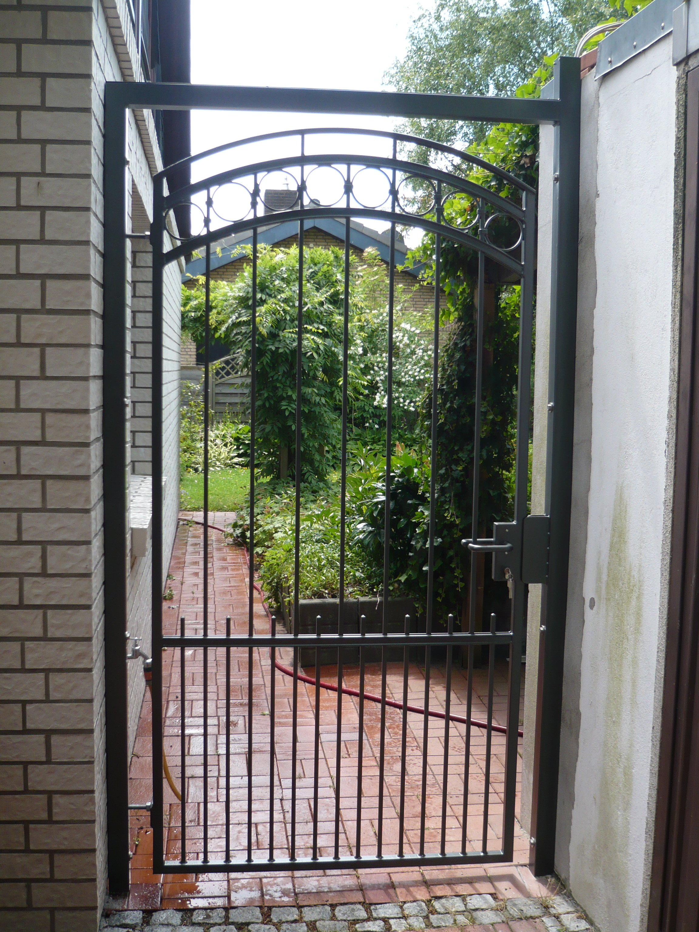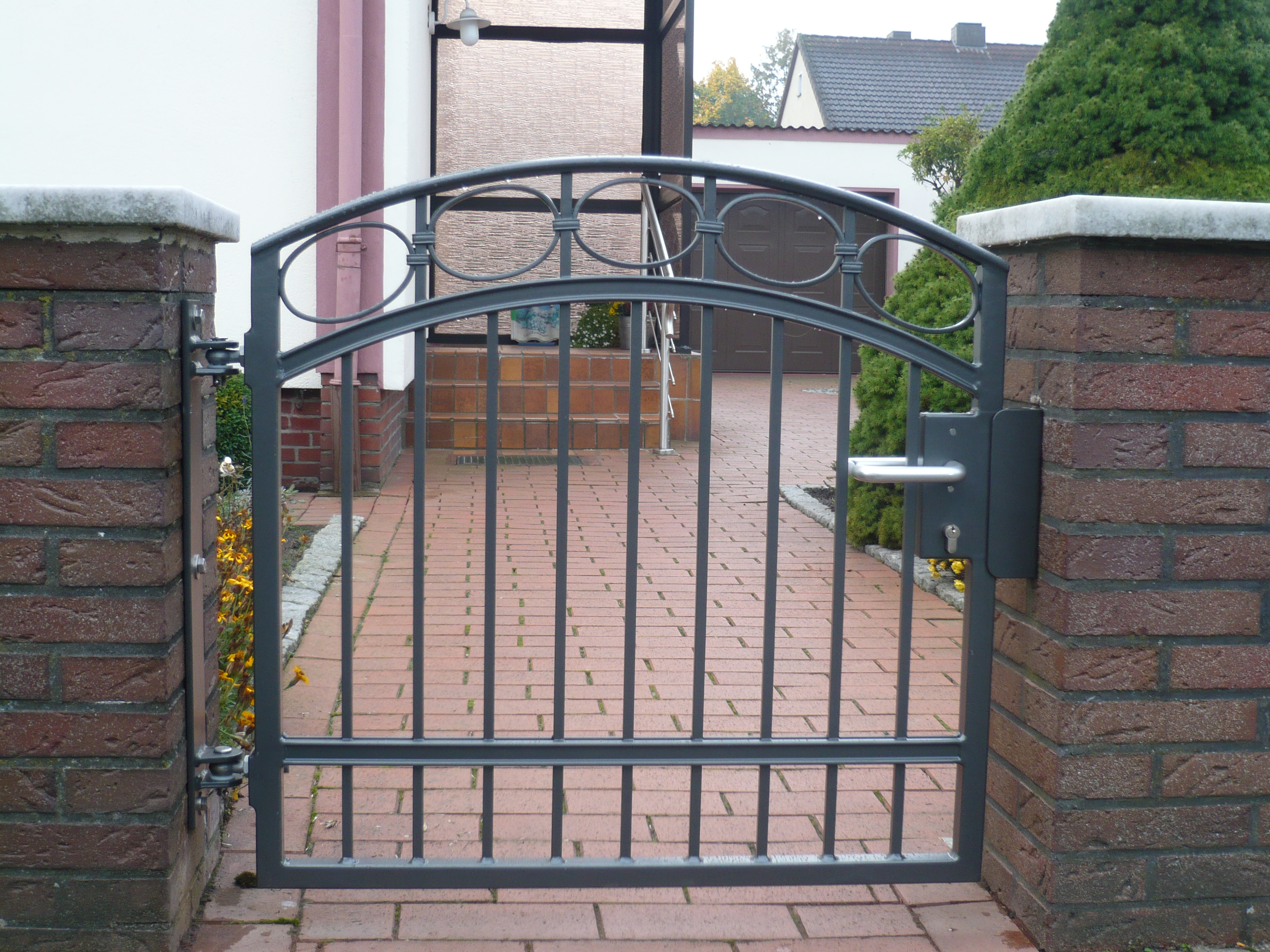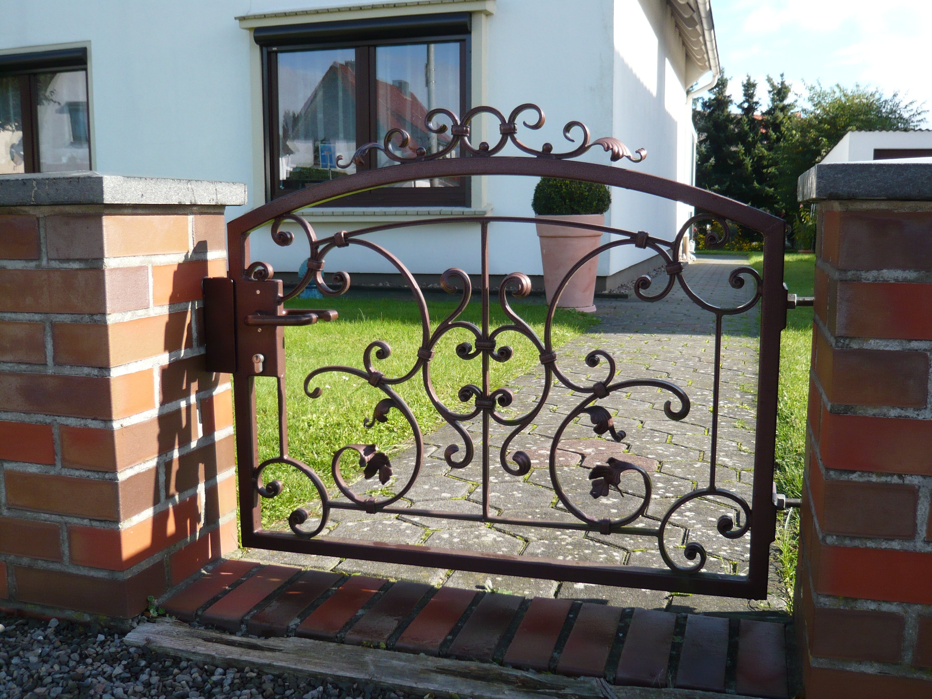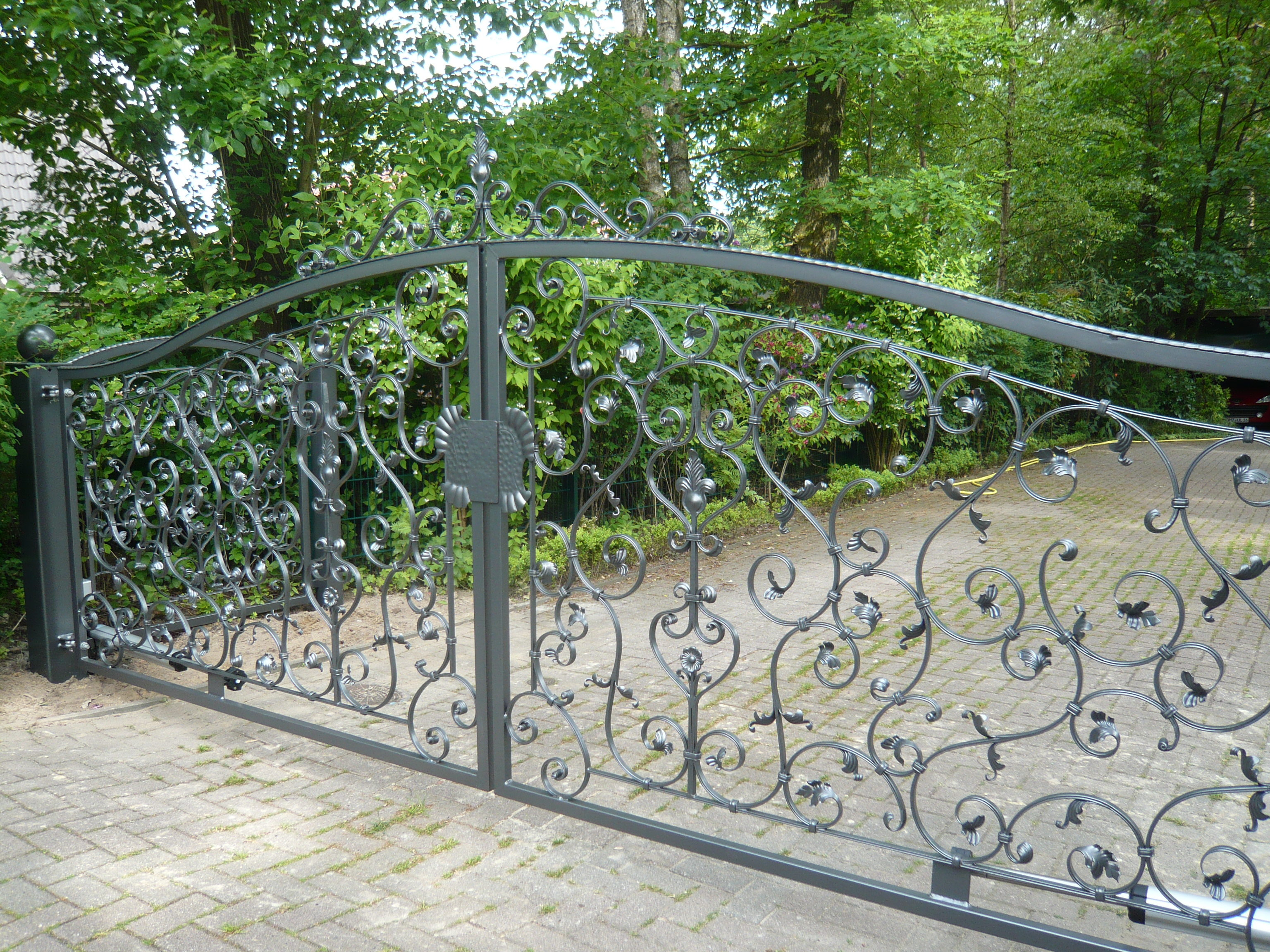 Der Begriff Schmiedeeisen umfasst eine große Palette. Schmiedeeisen entwickelt durch individuelles zusammenfügen einen besonderen Scharm. Ob kunstvolle Gestaltung oder Zweckmäßigkeit, jedes Tor erhält seine persönliche Note. Alle Tore verfügen über einstellbare Torbänder, hochwertige Schlösser und können auch mit elektrischen Torantrieben ausgestattet werden. Grundsätzlich sind alle Tore feuerverzinkt und können durch eine zusätzliche Pulverbeschichtung individuell gestaltet werden.